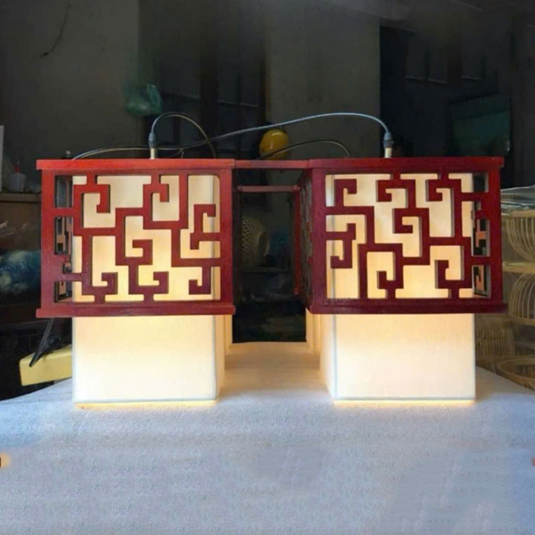 Đèn thả trần gỗ chao vải TH04-TG40/4